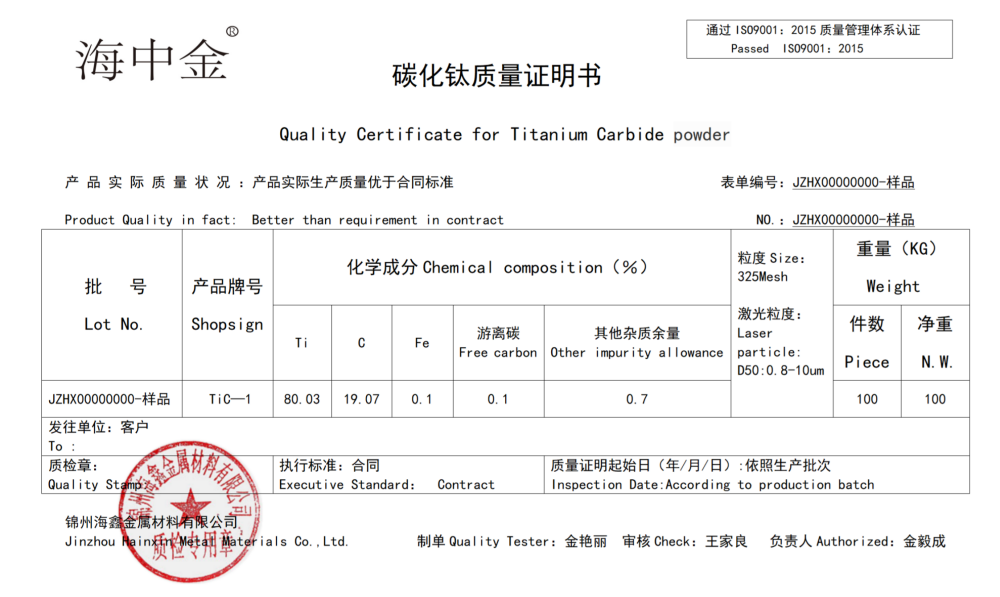 產(chǎn)品名稱:碳化鈦(TiC)