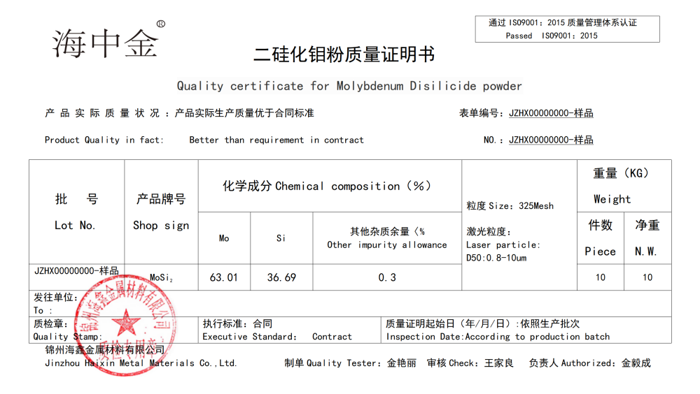 產(chǎn)品名稱:二硅化鉬(MoSi2)