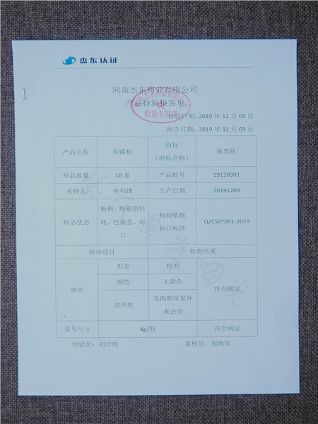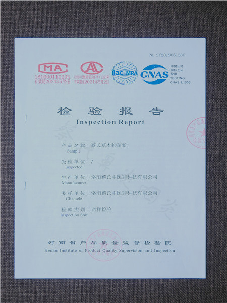 蔡氏草本抑菌粉檢驗(yàn)報(bào)告