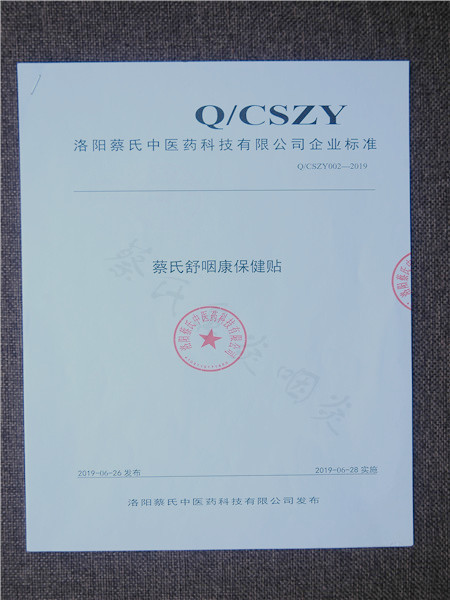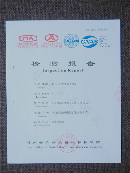 蔡氏舒咽康保健貼檢驗(yàn)報(bào)告